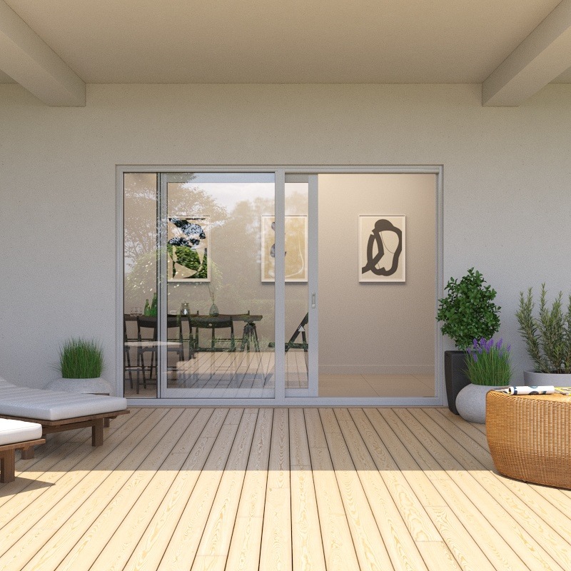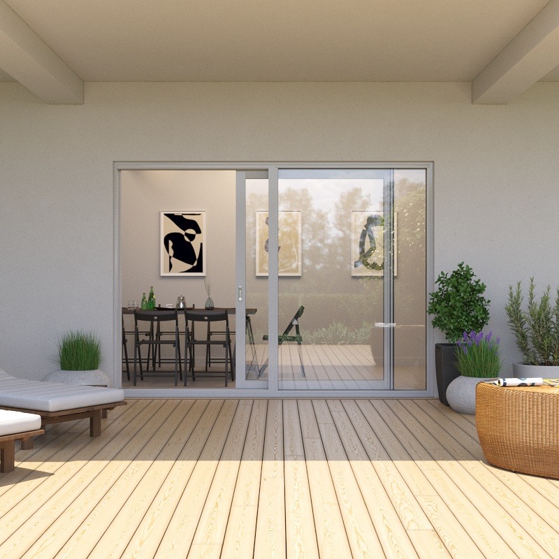 Material:Schiebetüren aus pulverbeschichtetem Aluminium mit thermischer Trennung.