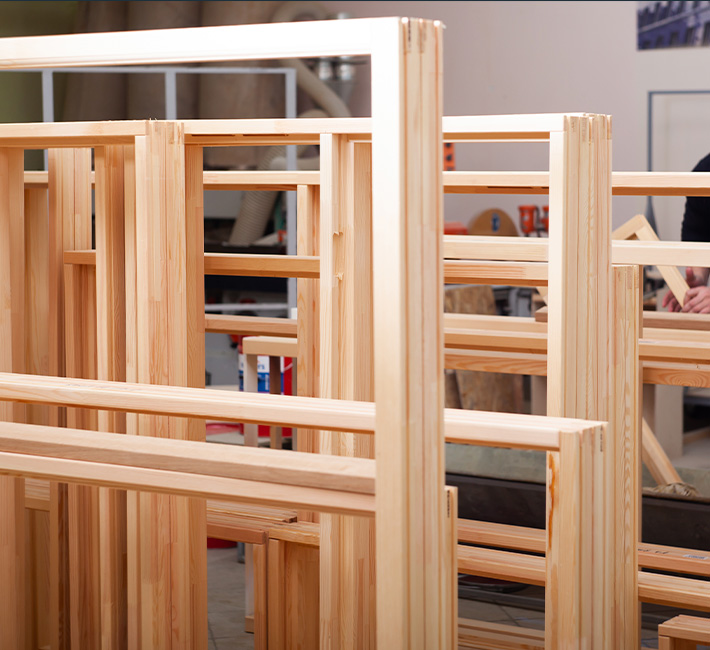 - Hochwertiges Holz, astreines hochwertiges Kiefernholz (Holz und Holz/Alu)