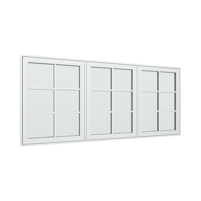 Festverglasung mit Rahmen in der Mitte, 2x3 Glasflächen (PVC-TSFKVM3-23)