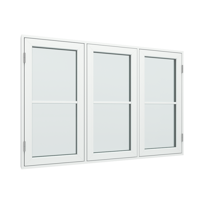 Festverglasung mit Rahmen in der Mitte 1x2 Glasflächen in jedem Teil (PVC-B3-12)