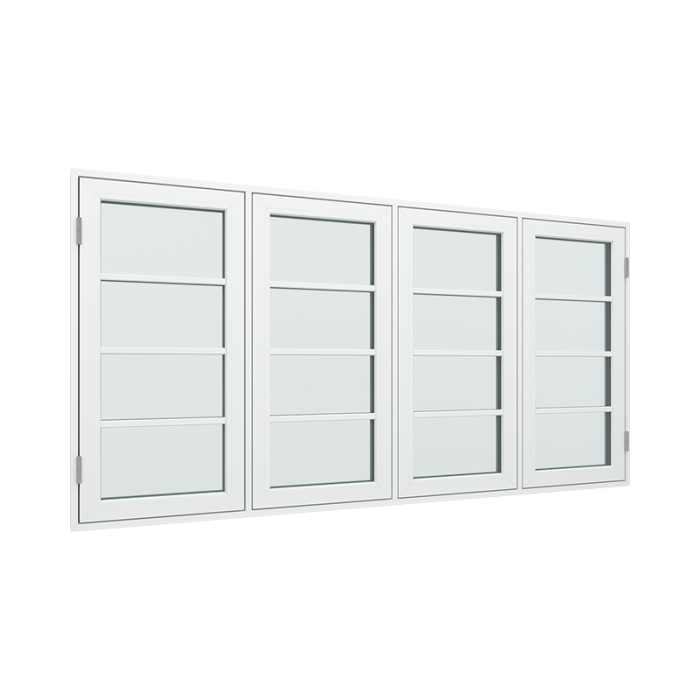 Festverglasung in der Mitte mit Rahmen 1x4 Glasflächen in jedem Teil (PVC-B4-14)