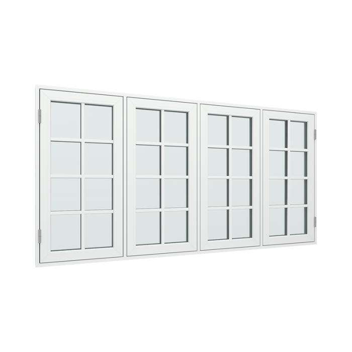 mit 2x4 Glasflächen Festverglasung mit Rahmen midten (PVC-P4-24)