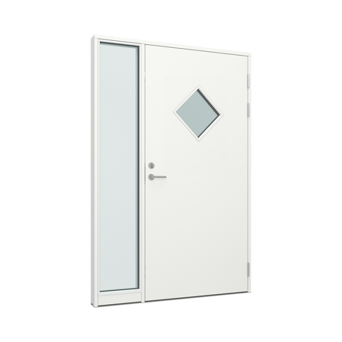 Tür glatt mit Quadrat mit 45 grad gedrehtem Glasfeld, und Seitenteil mit eine Glasfläche (TR-DP-004-11)