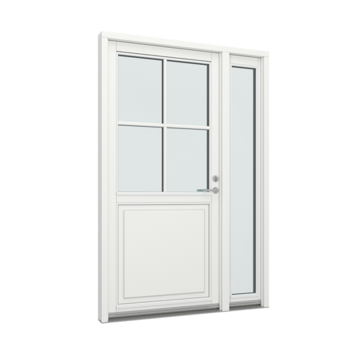 Tür mit einer Füllung und 2x2 Glasflächen, und Seitenteil mit einer Glasfläche (TR-DP-22-11-1F-11-IN)