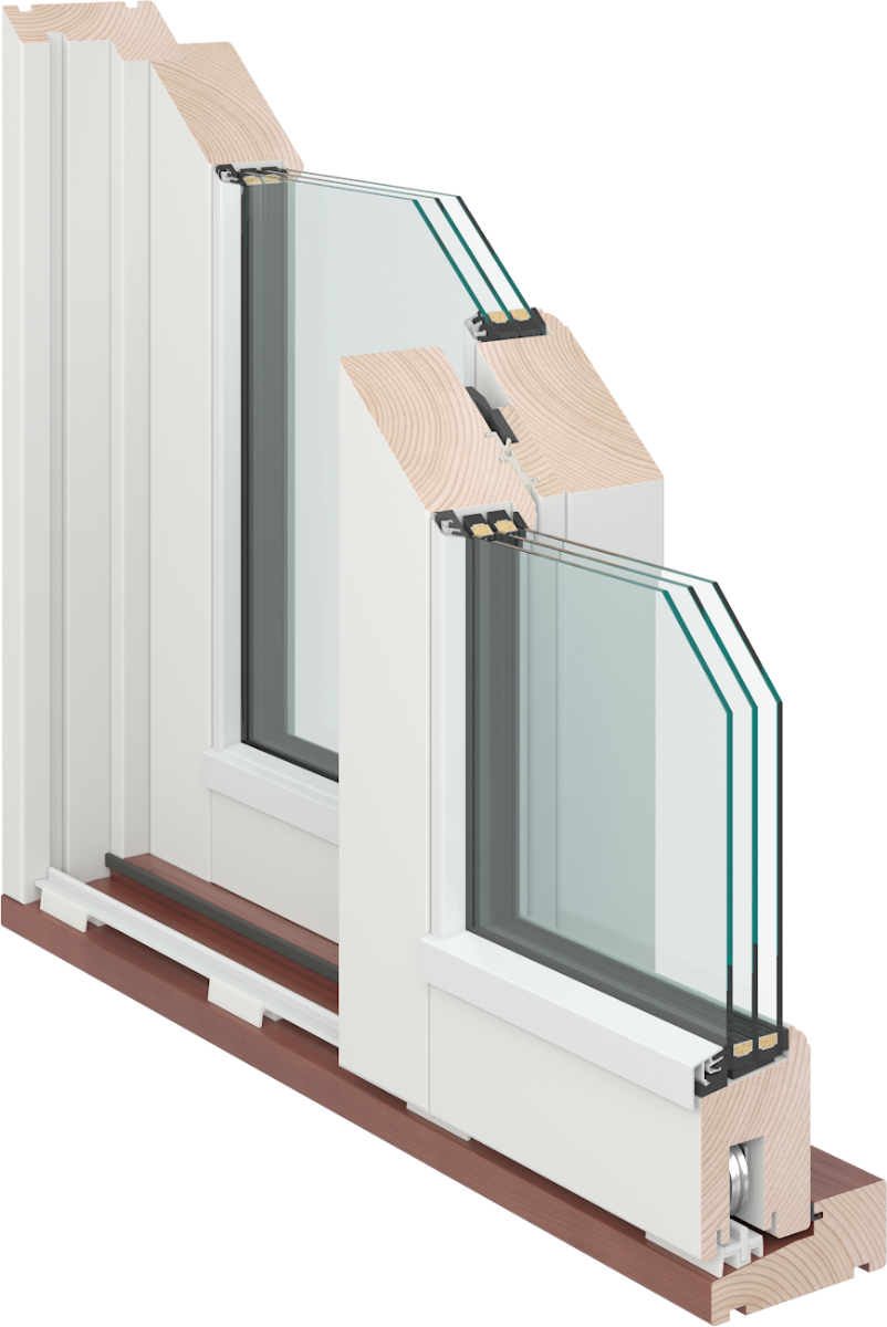 Die Fenster und Türen von Skanva Fenster können in verschiedenen Qualitätsmaterialien bestellt werden. Die Holz- und Holz/Alu-Elemente bestehen aus astfreiem, keilgezinktem 90% Kernholz
