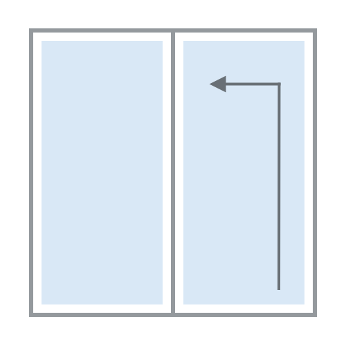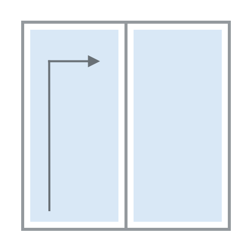 Hier können Sie wählen, ob sich Ihre Schiebetür von links nach rechts oder von rechts nach links öffnen soll. Beachten Sie, dass das Bild von außen abgebildet ist.