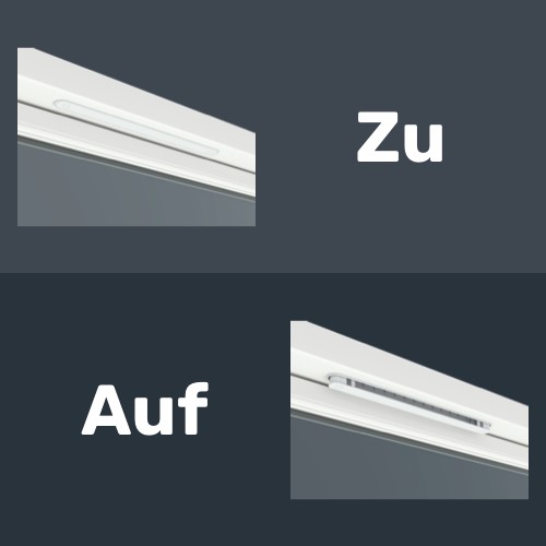 Wenn Sie das Raumklima in Ihrer Wohnung verbessern wollen, sollten Sie ein Lüftungsventil einbauen. Bei unseren Elementen mit weißer Innenfarbe ist ein weißes Lüftungsventil eingebaut. Bei farbigen Elementen ist das Lüftungsventil einfarbig grau.