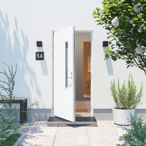 Hier können Sie einen Türgriff auswählen. Wir bieten keinen Yale Doorman für Türen aus dänischer Produktion an. Dänische Türen sind nicht mit gängige deutsche Schließzylinder und Drückergarnituren kompatibel. Yale doorman ist ein 3-Punkt-Schloss mit Tastatur, 1 Schlüsselanhänger, 1 Hub/Brücke (2,4 GHz) - Sie können die Tür mit Code, Schlüsselanhänger oder App öffnen Für den Einbau des Yale doorman muss die Tür mindestens 196 cm hoch sein. Wichtige Information um Yale doorman!