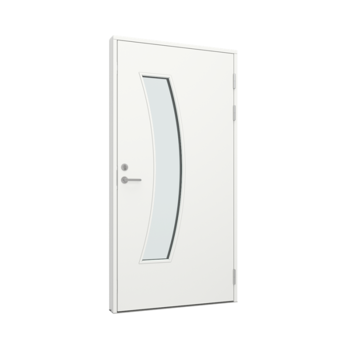 glatt mit länglichem gebogenem Glasfeld (Holz Tür, Holz/Alu Rahmen) (TRAL-PL1-13)