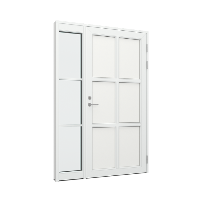 Tür mit 2x3 Füllungen, und Seitenteil mit 3 Glasflächen (TRAL-DP-23F-13-T)