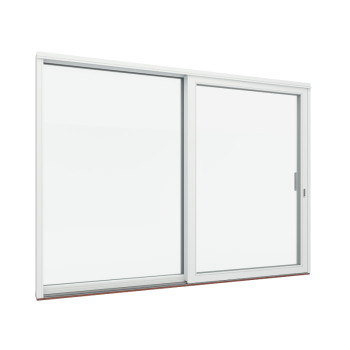 Der Rahmen der Schiebetür in Holz/Aluminium beträgt 172 mm. Hinzu kommen 13 mm für den Aluminium-Klimaschutz (gesamt 185 mm) und 30 mm für die Tropfkante oben (gesamt 202 mm).